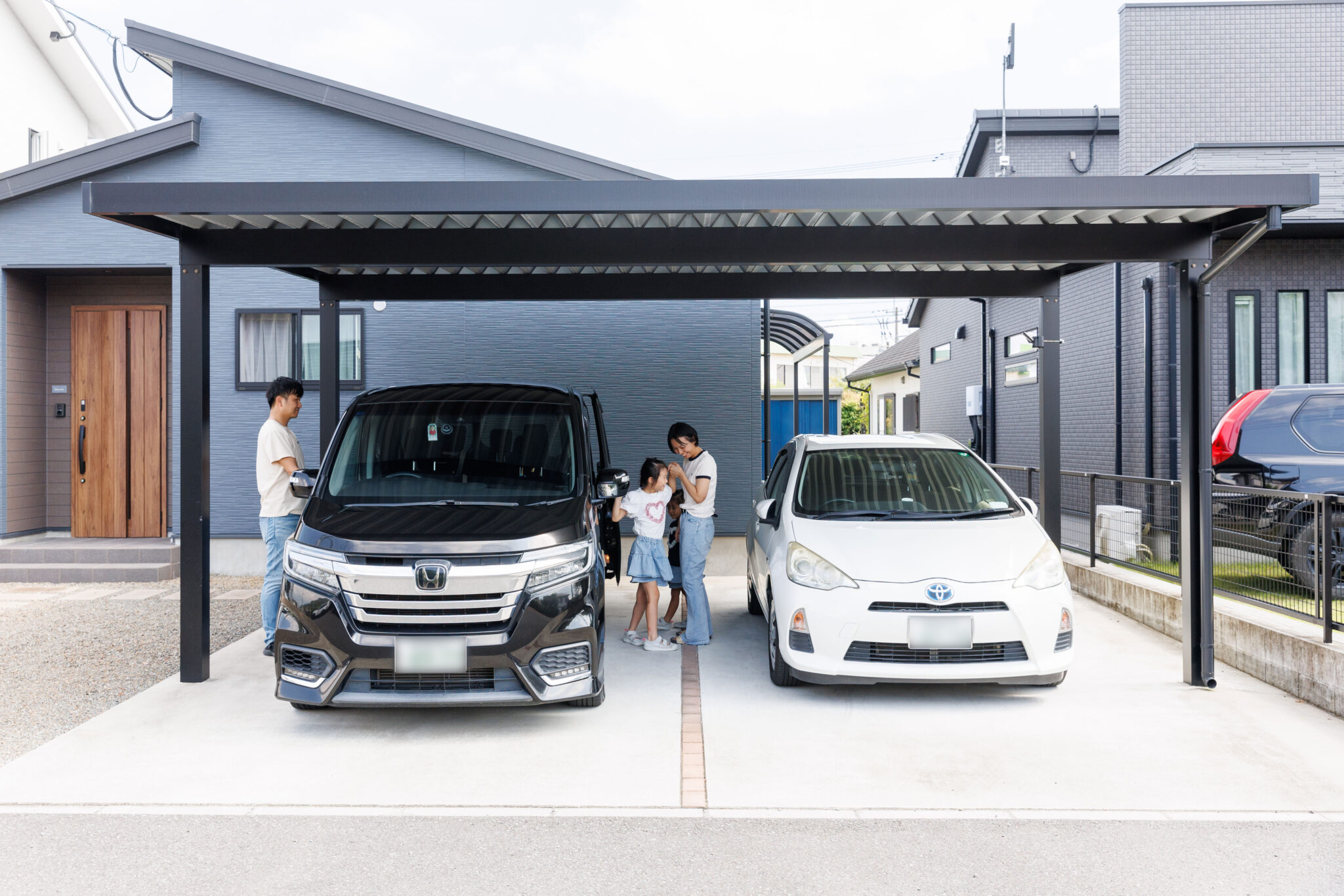 2台分をゆったり確保した駐車場は、日々の暮らしに安心と余裕を与えてくれるスペース。屋根付きのカーポートが設置されているため、雨の日の乗り降りも快適です。家族の車をしっかり守りつつ、使いやすさにも配慮された実用的な駐車場。生活動線にも優れ、日常を支える頼もしい存在となっています。